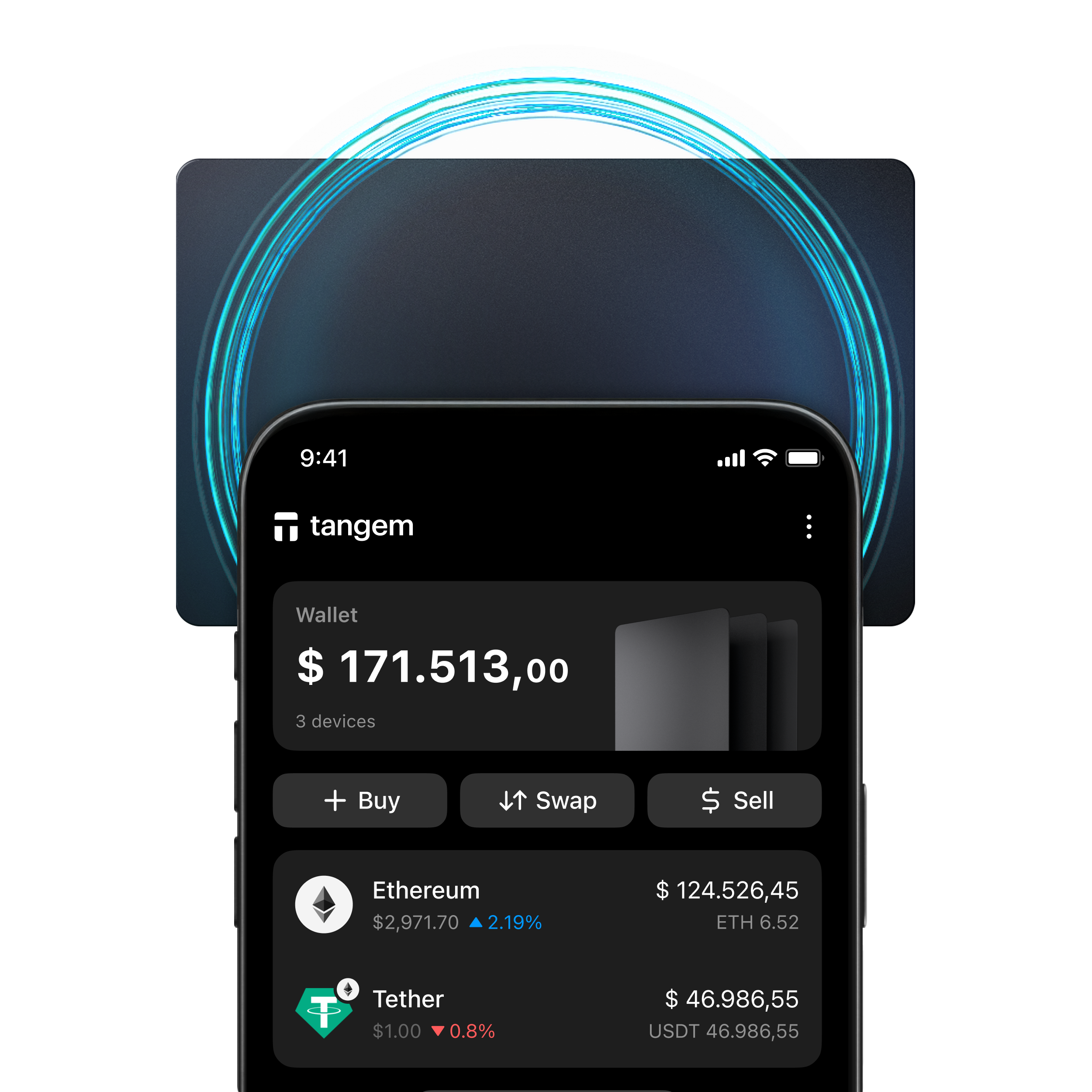 Tangem keeps your crypto safe and offline. Store, buy, earn, send, swap, and spend thousands of tokens.